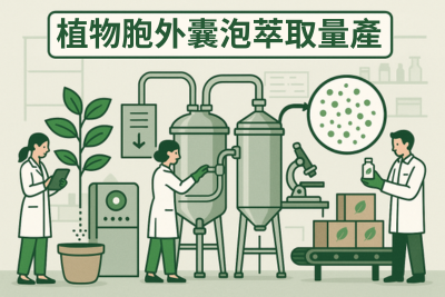 胞外囊泡是細胞間傳遞訊息的關鍵因子,具備天然生物特性,是多樣化應用領域的潛力核心技術。我們專注於植物來源胞外囊泡的高純度萃取與量產,為多元應用領域提供客製化解決方案。